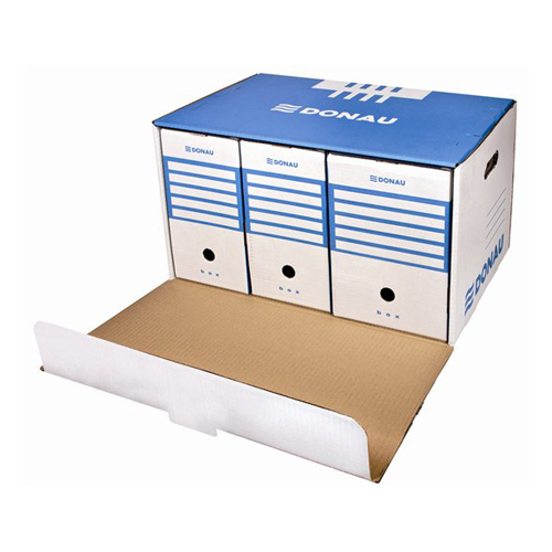 Kapacita: 5 ks 100 mm archívnych boxov alebo 6 ks 75 mm šanónov, v nezloženom stave. Jednoducho skladateľný. Max. nosnosť 20 kg. Farba: modrá.