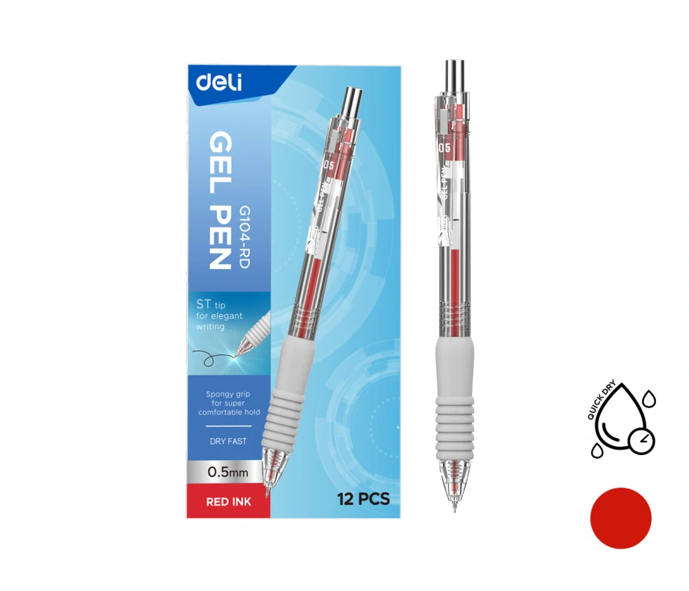 DELI Gelové pero rychleschnoucí 0,5mm needle - červená náplňSkladem u dodavatele - expedice 3-7 prac.dnů 110 ks14,90 Kč/ ks12,31 Kč bez DPH