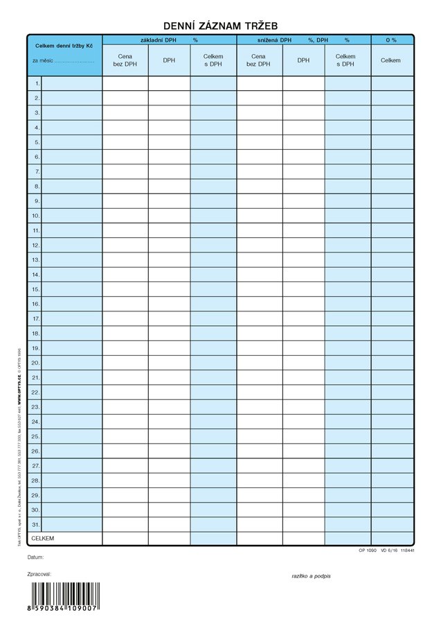 Optys Denní záznam tržby A4Skladem u dodavatele - expedice 3-7 prac.dnů 500 ks4 Kč/ ks3,31 Kč bez DPH