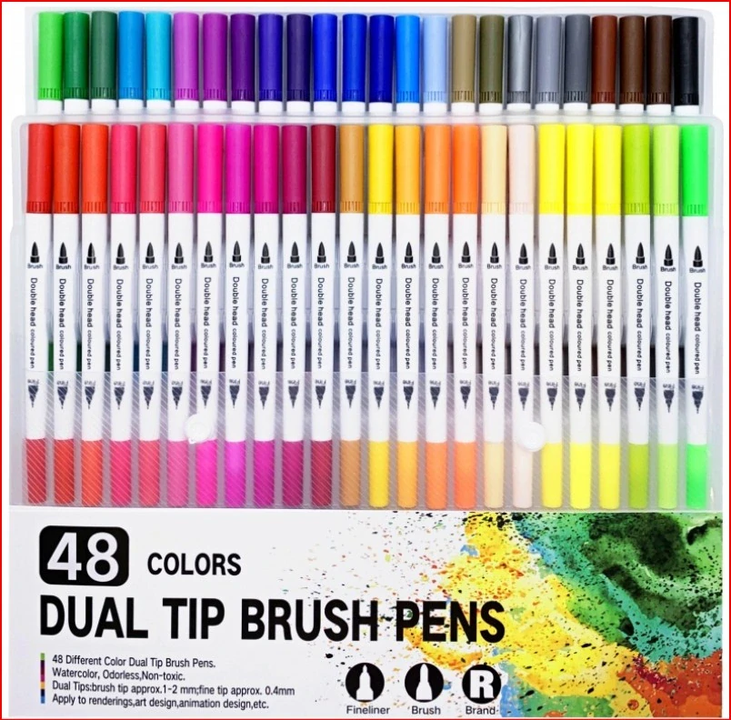 Fixy štětcové oboustranné BRUSH - LINER - sada 48 ks