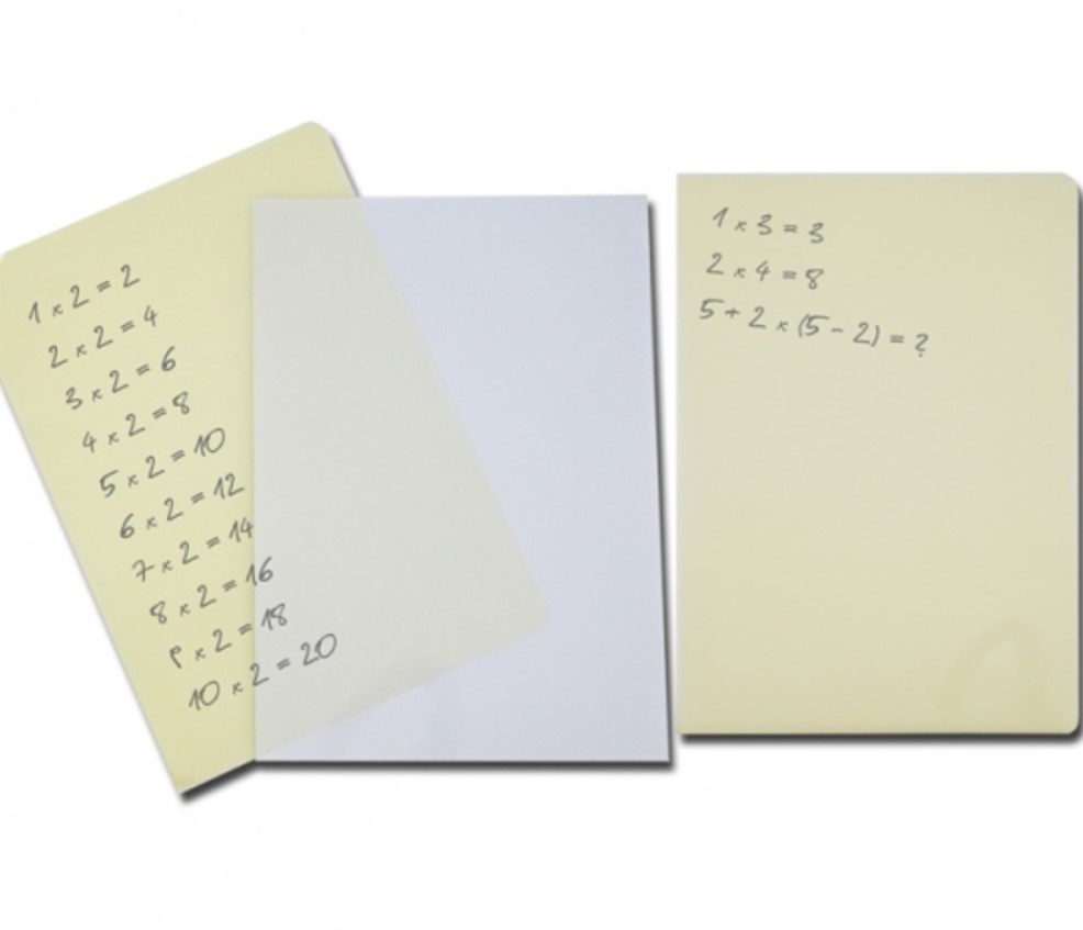 Popisovací složka (fólie) je vhodná pro školáky. Lze lehce gumovat a opětovně použít.