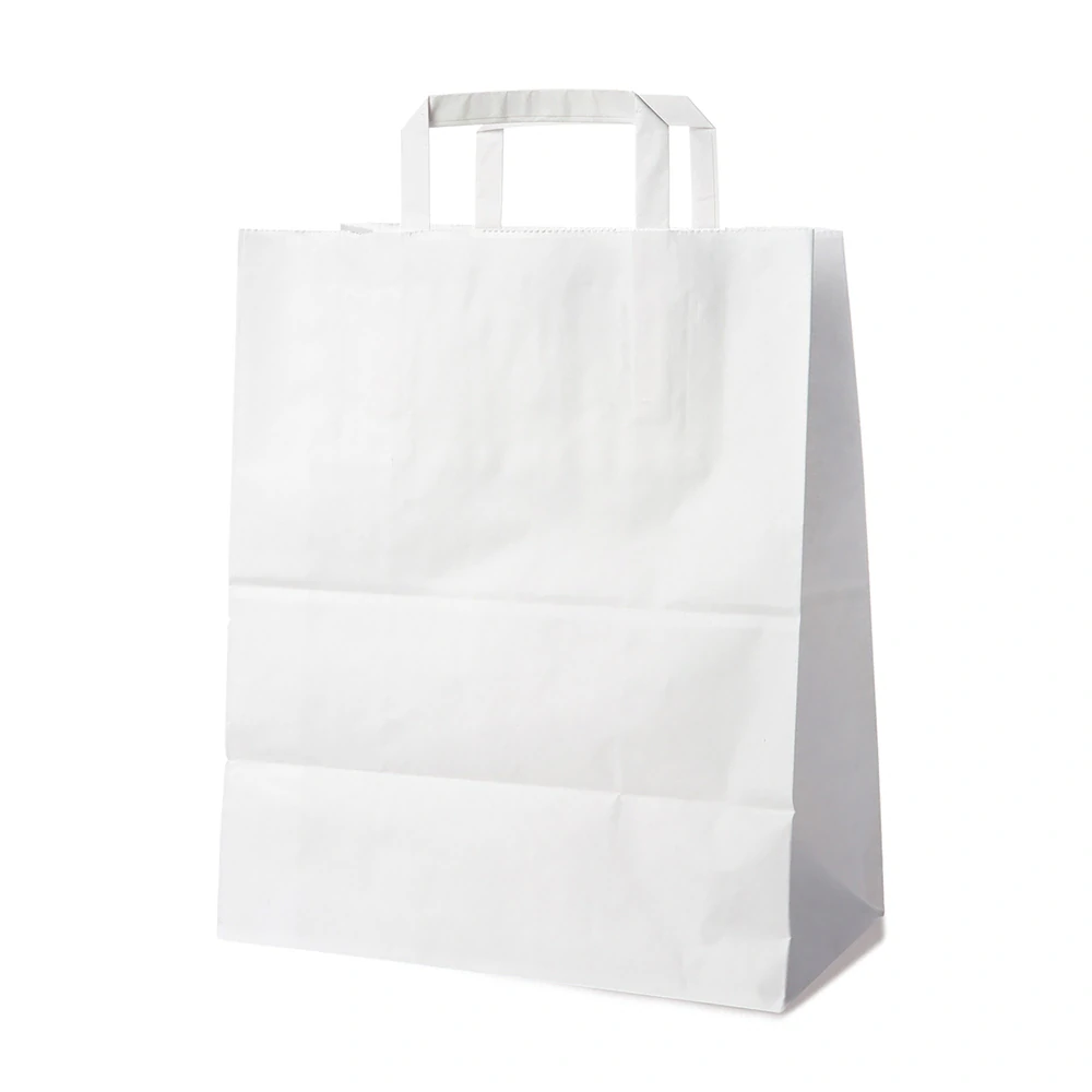 Papírová taška (PAP) z tvrzeného bílého papíru vhodná na nošení nákupů, těžších předmětů a různých věcí. Využití pro doručovací služby, fast foody, pekárny, cukrárny, prodejců na trhu a různé obchody. Bio materiál PAP - 100% celulóza z čerstvých papírových ekologických vláken. Taška vyrobena ze 100% celulózy a z vrstvených lepenek s podílem recyklovaného papíru, ekologicky lepené. Materiál je cennou surovinou v cyklickém hospodářství recyklace, rozložitelný a vhodný pro styk s potravinami.